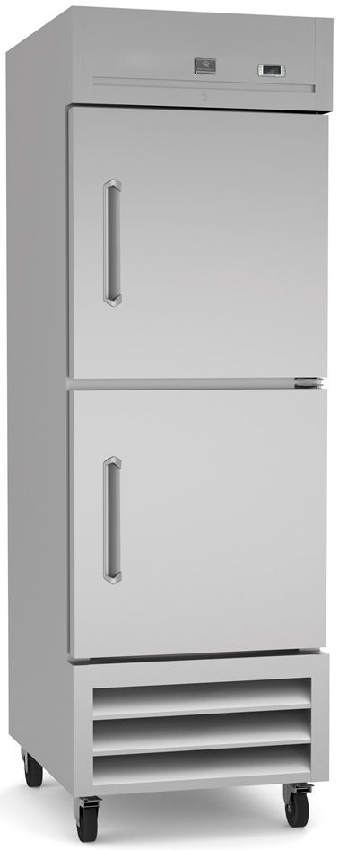2 half doors freezer with exterior back and bottom panels in galvanized steel, exterior side and top panels in 430 stainless steel; interior back, side, top and bottom panels in 304 stainless steel. Control with cabinet temperature display. Self-closing and on-site reversible door feature lock and key.Read More