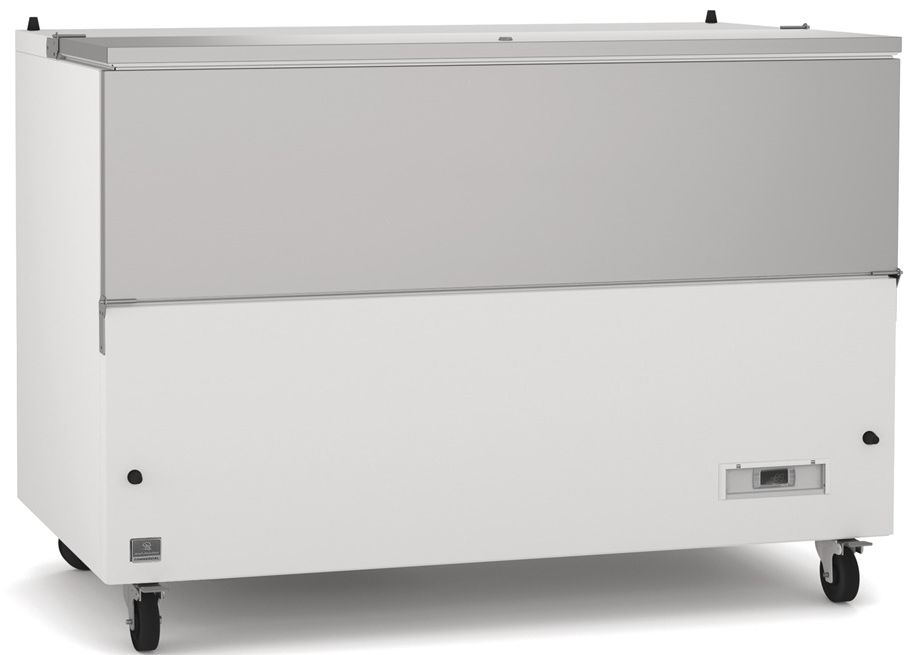School milk cooler with exterior back panel in white-painted steel, bottom panel in galvanized steel, exterior side panels in white-painted steel and top in 430 stainless steel; interior back and side panels in 430 stainless steel, interior bottom in 304 stainless steel.Read More